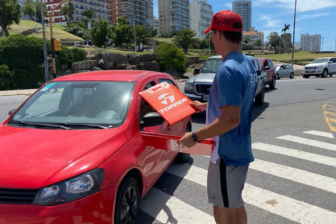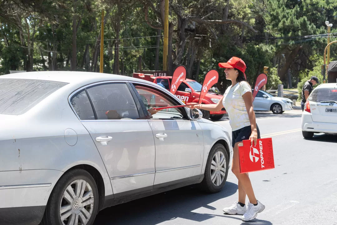 El equipo de BTL llevó distintos promotores a la costa para la entrega de parasoles.